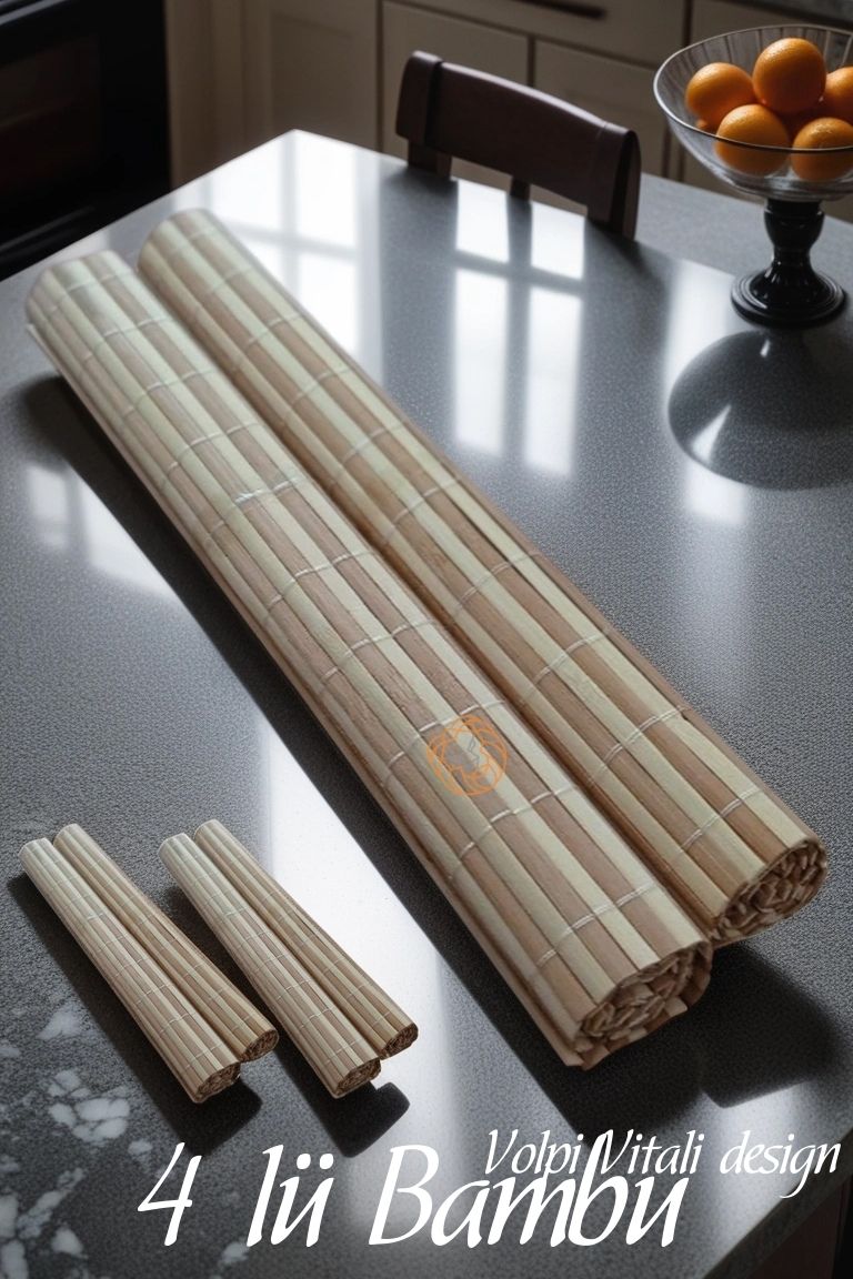BOYUT VE MALZEME : Her masa matı (45cmX30cm), 4'lü set, %100 doğal bambudan yapılmış, pürüzsüz cilalama, çevre dostu, yıkanabilir, yeniden kullanılabilir.Yuvarlak bambu çubuklardan yapılmıştır. Bunlar yapı itibarıyla suşi sarma matlarına benzer ve bu şekilde kullanılabilir.