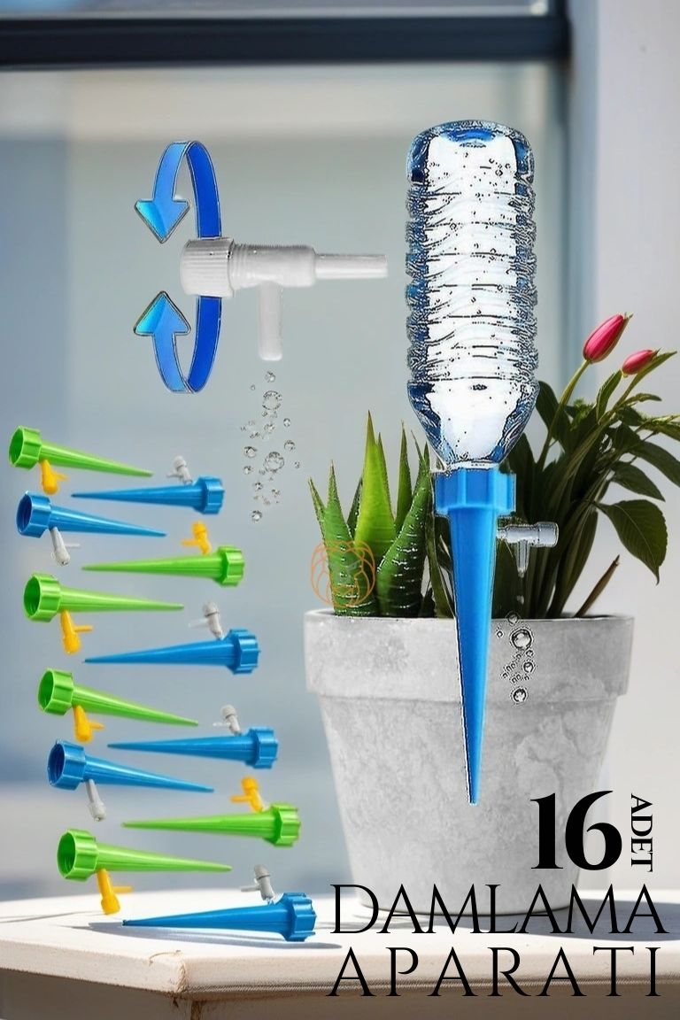 Kendi şişesi ucuna takılan aparatın damlama hızı/şiddeti yanındaki vanası ile ayarlanır ve toprağa batırılarak çiçeğin sürekli istediğiniz ölçüde sulanması sağlanır. Aynı zamanda herhangi bir 0,5 lt 1,5 lt gibi pet şişeleri de takabilirsiniz.