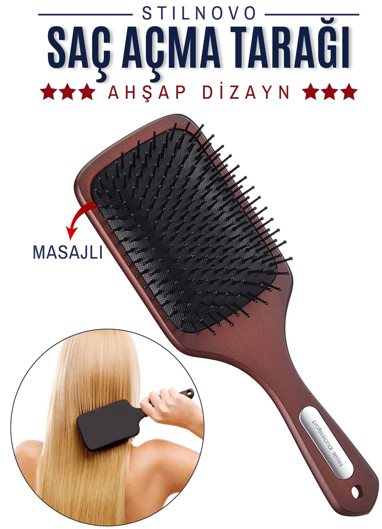 AHŞAP SAPLI KIL FIRÇA : Saçınızı doğal olarak şekillendirmeye ve saçınızın doğal yağlarını eşit olarak dağıtmaya yardımcı olan yuvarlak uçlu ahşap kıllar. Kıllar aynı zamanda nazik ve dayanıklıdır, saç derisine masaj yapmak kan akışını uyarır ve bu da sağlıklı saçlarla sonuçlanır. Geniş oldukları için tararken saçları daha az kırarlar, Bu da saç derisinin zarar görmesini engeller. Saç fırçası kalın, ince, kıvırcık, uzun, kısa ve kuru saçlar için mükemmeldir. Her iki dünyanın da en iyisinin tadını çıkarabilmeniz için ahşap saç fırçası kullanmanın faydalarını saç fırçası setinin gücüyle birleştirdik.