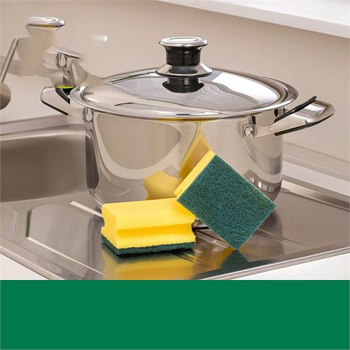 İNANILMAZ OVMA GÜCÜ: Her Bulaşık süngerinin iki yüzü vardır: yumuşak, emici bir sünger ve sert, sert bir ovma pedi. Bu, bulaşık yıkamak, tencere ovmak ve duvarları, zeminleri ve çalışma yüzeylerini temizlemek için daha az zaman harcayacağınız anlamına gelir.
