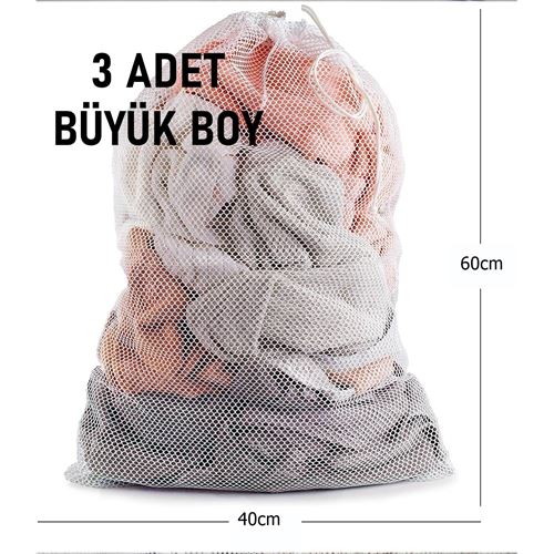SÜPER BÜYÜK BOY : Büyük ağ yıkama torbamız 40 x 60 cm, küçük ağ torbamız 35x45 cm ölçülerindedir. Bu büyük çamaşır torbası, birçok kişinin yıkama ihtiyacını karşılayabilir. Geniş alana sahiptir, yıkamayı daha yeterli, daha temiz hale getirir. Giysileri, Kotları ve Diğer Büyük Giysileri, Banyo Havlularını, Çarşafları, Masa Örtülerini, Perdeleri ve diğer Ev Eşyalarını yıkamak için uygundur.