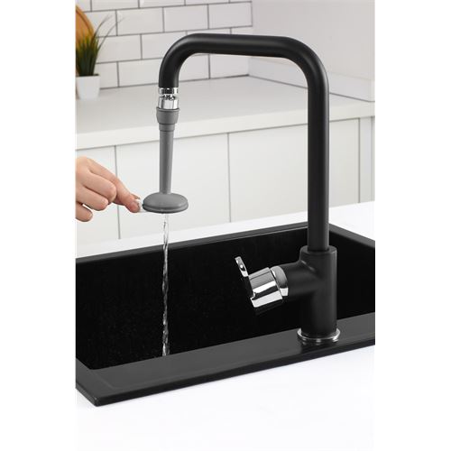 Silikon esnek musluğa giriş ağzı sayesinde %99 musluklara uyumludur. 2 fonksiyonludur ve bu fonksiyon ürün üzerindeki küçük ½ kademesiyle ayarlanabilir. Duş modeli ve düz olarak akabilir. Kullandığımız suyun püskürtme hızını, kullanım amacına göre ayarlayabilme imkanı sunar.