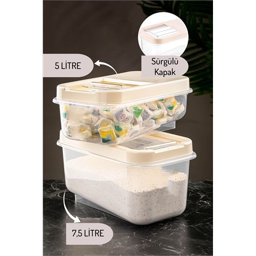 ÖLÇÜLER : 5 litre Ürün Ölçüsü 34,5x19x12,5 cm ve 7,5 litreden Ürün Ölçüsü 34,5x19x17,5 cm oluşan 2 li set