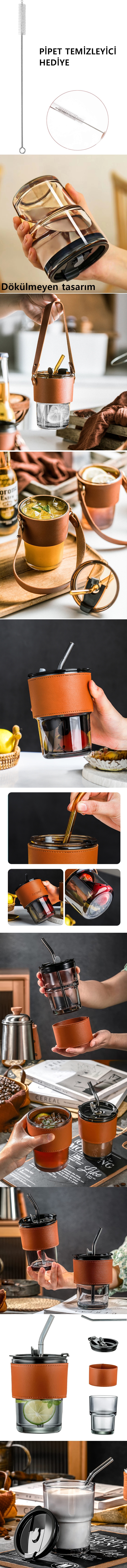 “İÇMEK” İÇİN TASARLADIK :Cam kahve kupası yüksek kaliteli camdan yapılmıştır. Yeniden kullanılabilir cam pipet 、 çok amaçlı sızdırmaz kapak 、 kolay içmeyi sağlayan yeniden kullanılabilir ısıya dayanıklı deri kaplama ile birlikte gelir. Ayrıca doğrudan içmek için kapağı ve pipeti çıkartabilirsiniz. Deliği kapatmak için küçük bir durdurucu olduğundan kapak sızdırmazdır. Pipetli ve kapaksız kupayı, kahve kupası, süt bardağı, su bardağı, çay bardağı, meyve suyu, smoothie veya diğer içecek bardağı olarak çok amaçlı olarak kullanabilirsiniz.